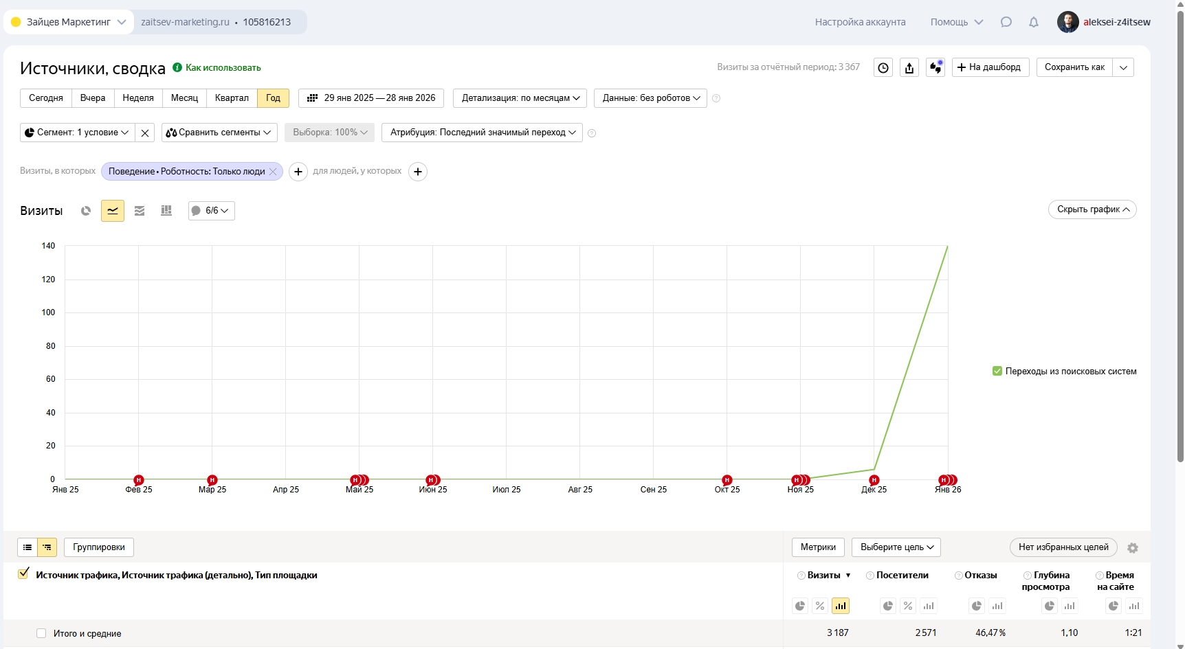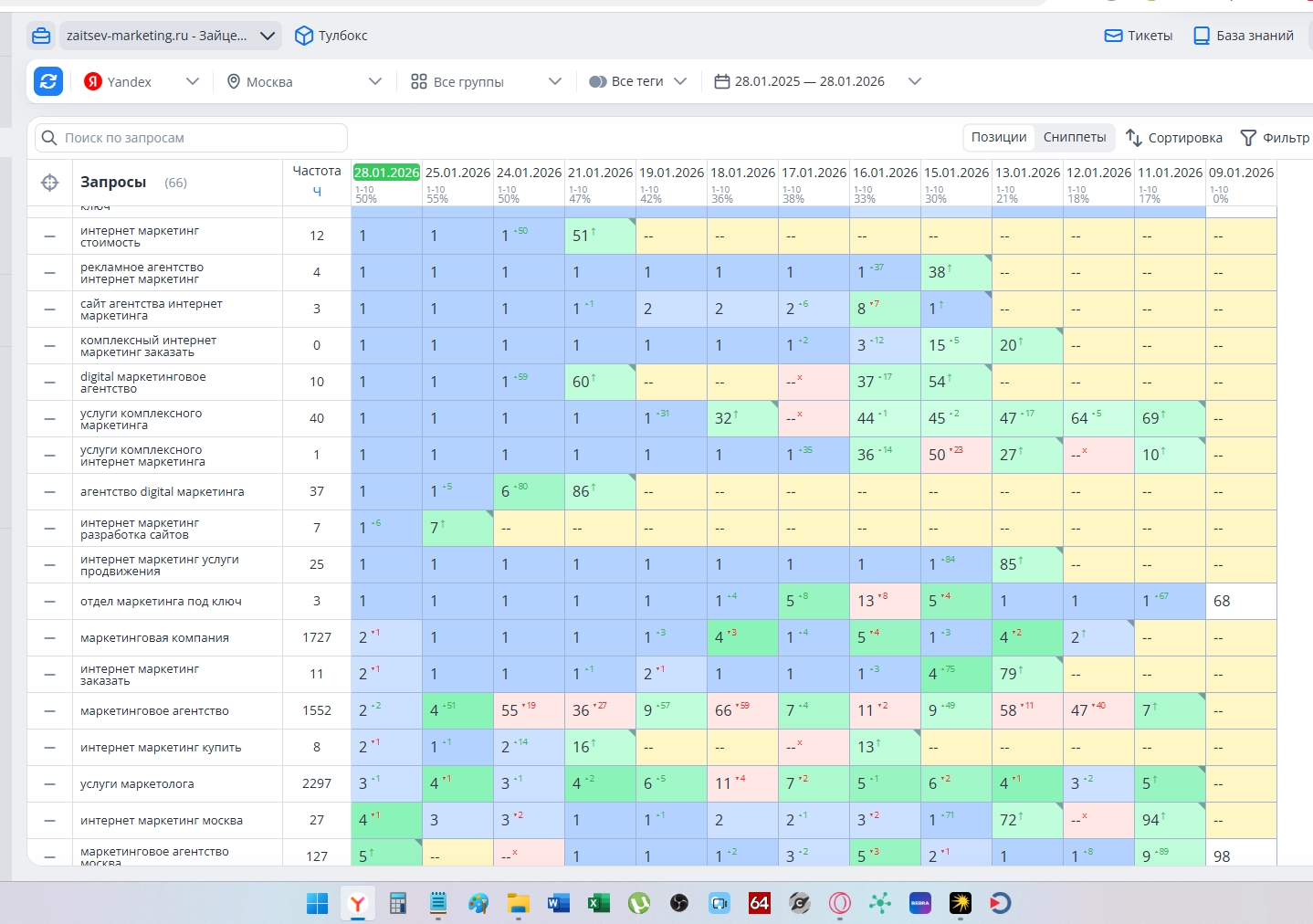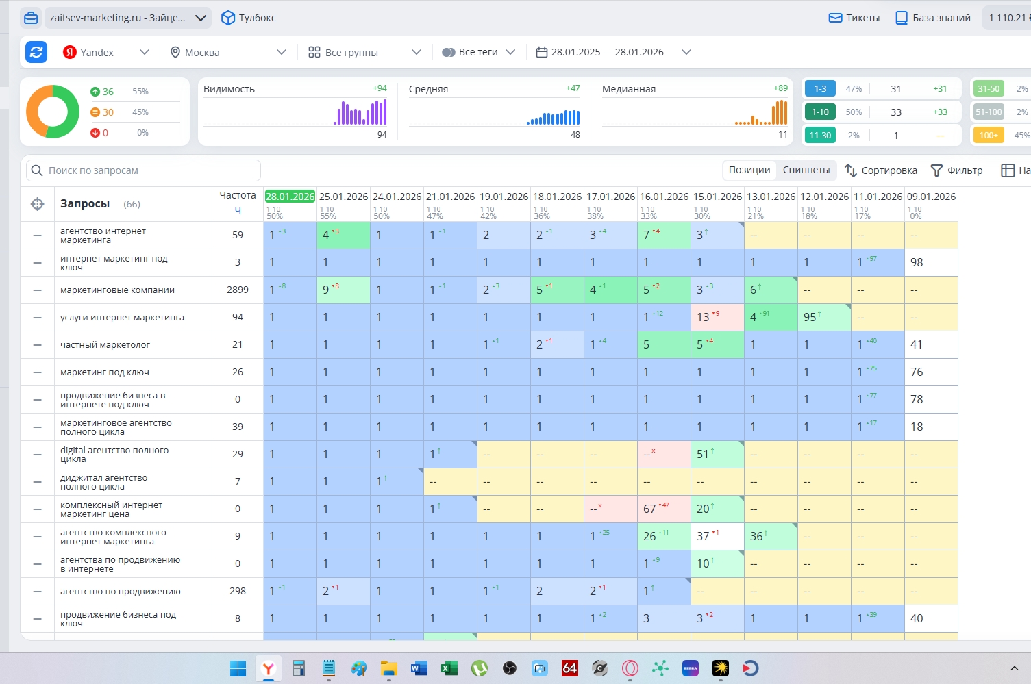 Ранее у меня по сео не было своего сайта, был только сайт визитка (zaitsev-seo.ru), но в конце 2025 решил сделать себе сайт под сео. За несколько дней сделал анализ конкурентов (18 штук), сделал прототип, отправил прототип в разработку. Подобрал тематичные доноры; настроил на сайт поиск и РСЯ. Также подключил ПФ себе на сайт. Первые позиции появились примерно через 1,5-2 недели, далее их подхватили пф, и сейчас уже половну из всех запросов в топ-10. Всего кручу 60 запросов, самые тематичные. За январь уже было 2 заявки с сайта. Сайт заточен под конверсию, по нему сделаны все пункты из чек-листа по проверки конверсии. Сайт сделан на Тильде.