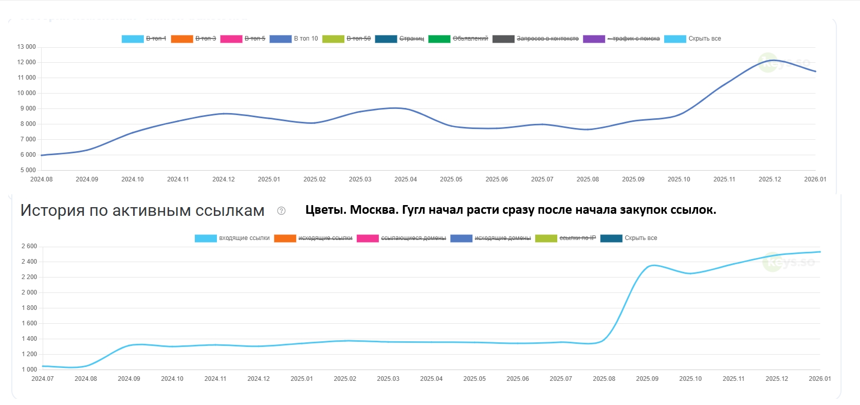 Гугл — Январь 2026 (продвижение ссылками) (цветы, скупка, таможня)