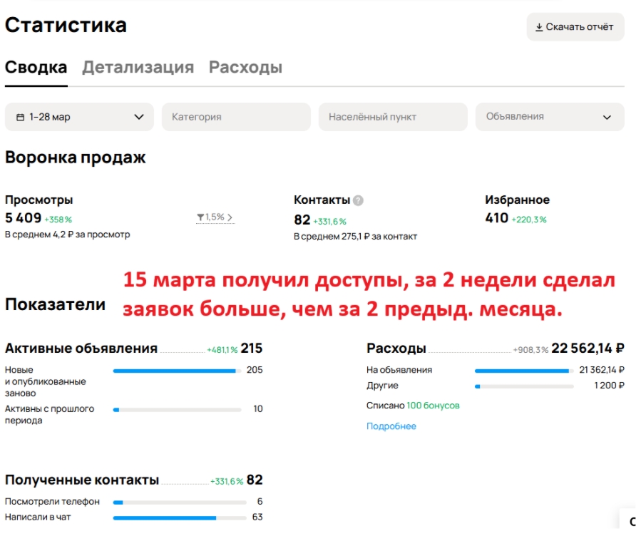 Считаю что это один из самых лучших моих кейсов по Авито (за все время оказания клиентам этой услуги — 1 год).